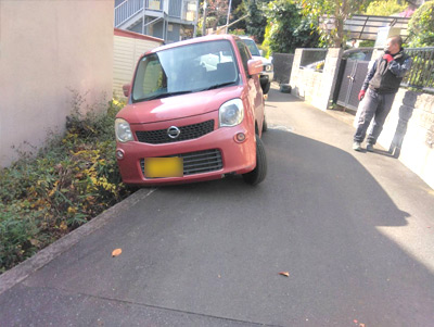 狭い住宅街で通常のロードサービスでは対応が難しい現場でしたが、無事救出・点検まで完了しましたので、作業事例としてご紹介いたします。